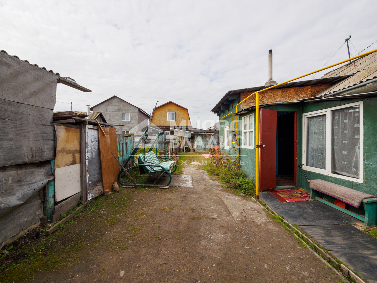 Дом построен в 1967 году, его общая площадь составляет 57.9 кв. м, из которых 33 кв. м — жилая. В доме две комнаты, кухня площадью 9 кв.м и совмещённый санузел. Участок площадью 5 сотки благоустроен и имеет статус индивидуального жилищного строительства. На нем есть гараж. В доме новым собственникам остается вся мебель.