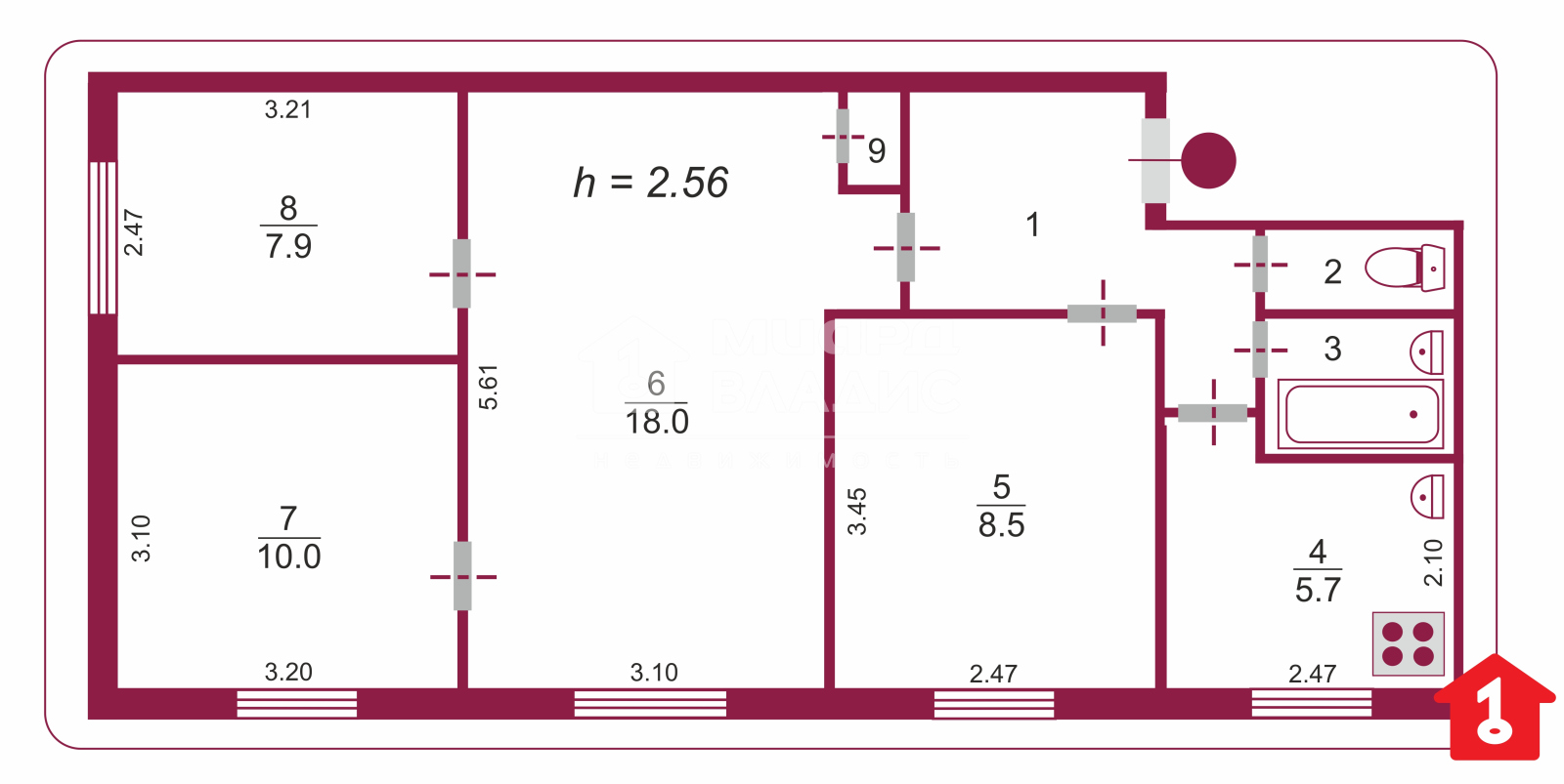 3 комнатная квартира