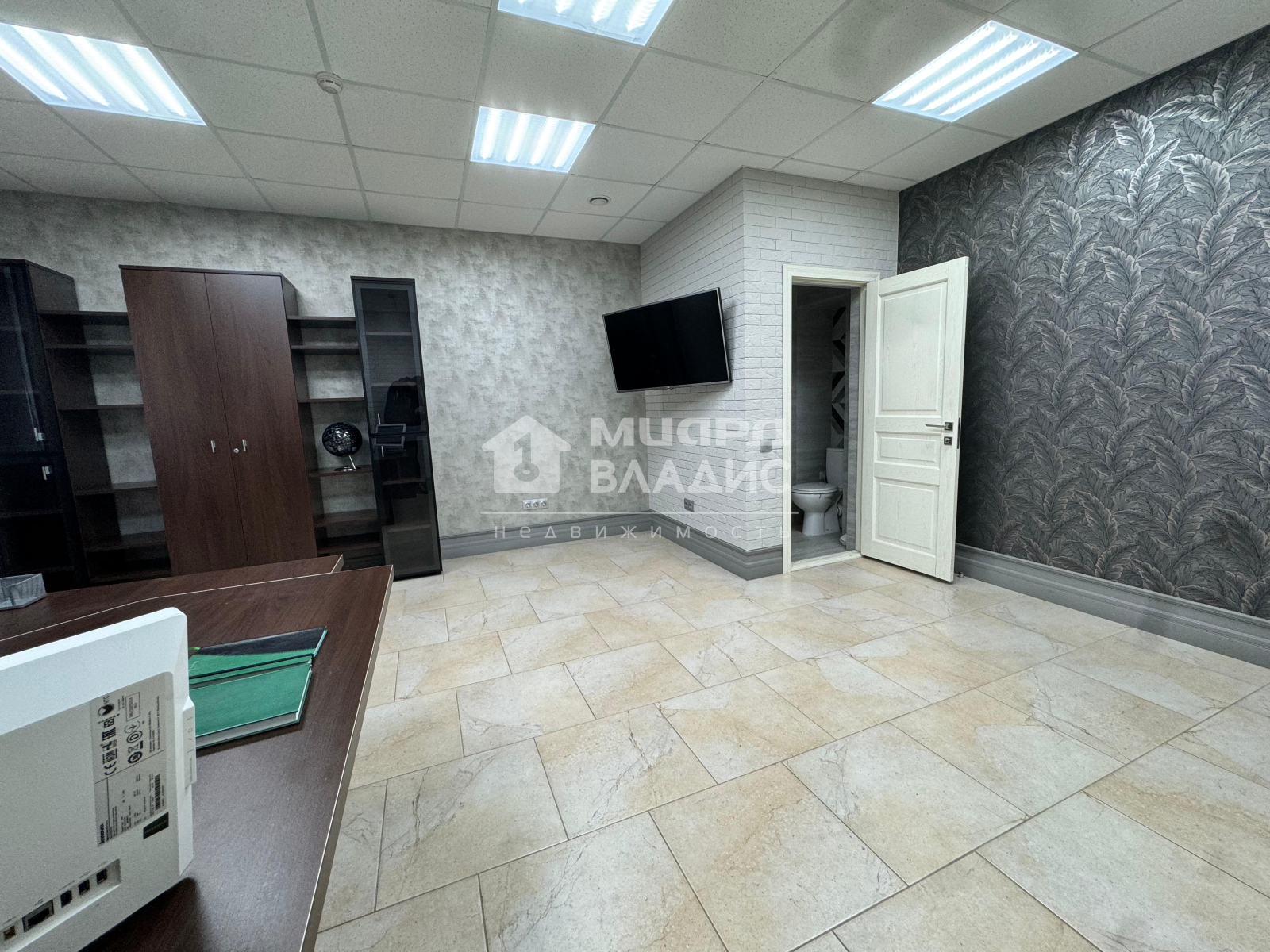 Отдельный вход, большой коридор и велком-зона. В кабинете директора качественная мебель и собственный санузел с душевой. Во второй большой комнате - отдельная кухня. Дополнительно есть еще один санузел, установлена дорогая французская сантехника.