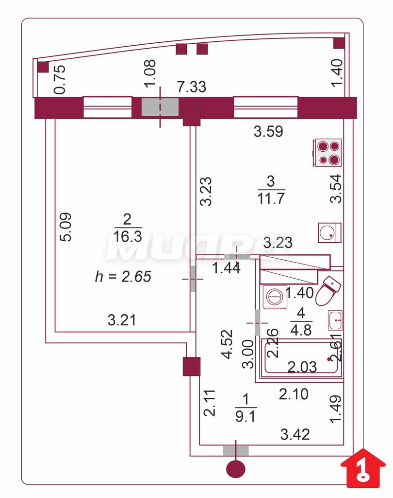 1 комнатная квартира