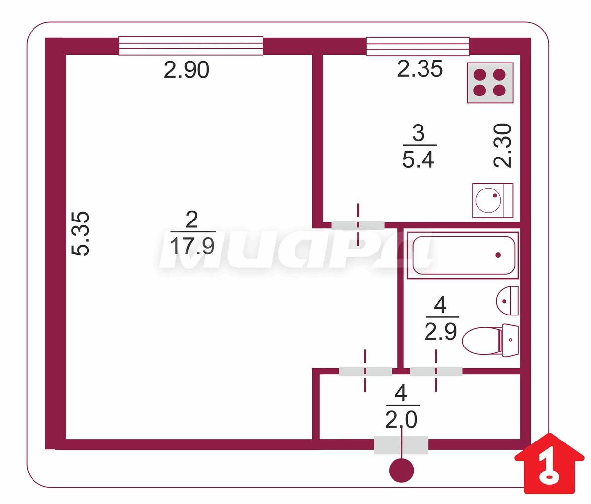 1 комнатная квартира