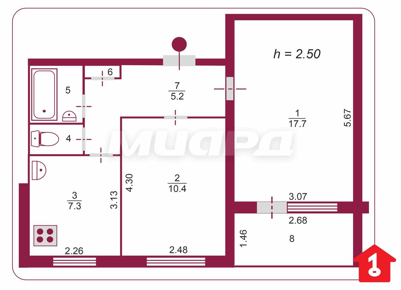Компания МИАРД Владис предлагает хорошую, уютную двухкомнатную квартиру в Омске по адресу проспект Мира, 106А. Квартира расположена на 8 этаже 9-этажного панельного дома 1980 года постройки. Общая площадь — 44,1 кв.м (указана без учета лоджии), жилая — 27,6 кв.м, кухня — 7,3 кв.м. Отличные параметры: комнаты изолированы, их площадь составляет 17,2 и 10,4 кв.м, не угловая, не крайний этаж, окна выходят на солнечную сторону. В квартире сделан косметический ремонт, что позволит новым владельцам сразу заселиться и комфортно обустроить своё пространство. Коридор и кухня выложены напольной плиткой. В спальне новый добротный линолеум. Туалет и ванная раздельные — это удобство для всей семьи. В ванной очень красивая испанская плитка, на полу керамогранит. Также есть вместительная лоджия, где можно устроить зону отдыха. Лоджия утеплена тройным стеклопакетом, стены утеплены МДФ. Проведено освещение. Квартира очень теплая. При продаже остается ВСЯ! мебель и бытовая техника (кроме телевизора). Отличный вариант: заходи и живи! Во дворе наземная парковка, что обеспечит удобное место для автомобиля. К тому же, за домом - огромный гаражный кооператив. В шаговой доступности 32 школа, 2 детсада, супермаркеты и все объекты социально-бытового назначения. Квартира на чистой продаже. Один совершеннолетний собственник. Без обременений и перепланировок. Полная стоимость в договоре. Не упустите шанс стать обладателем этой замечательной квартиры! Звоните нам прямо сейчас, чтобы узнать больше и договориться о просмотре. Мы гарантируем безопасную сделку и юридическую поддержку нашим клиентам.