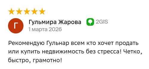 Рекомендую Гульнар всем, кто хочет продать или купить недвижимость без стресса! Четко, быстро, грамотно!