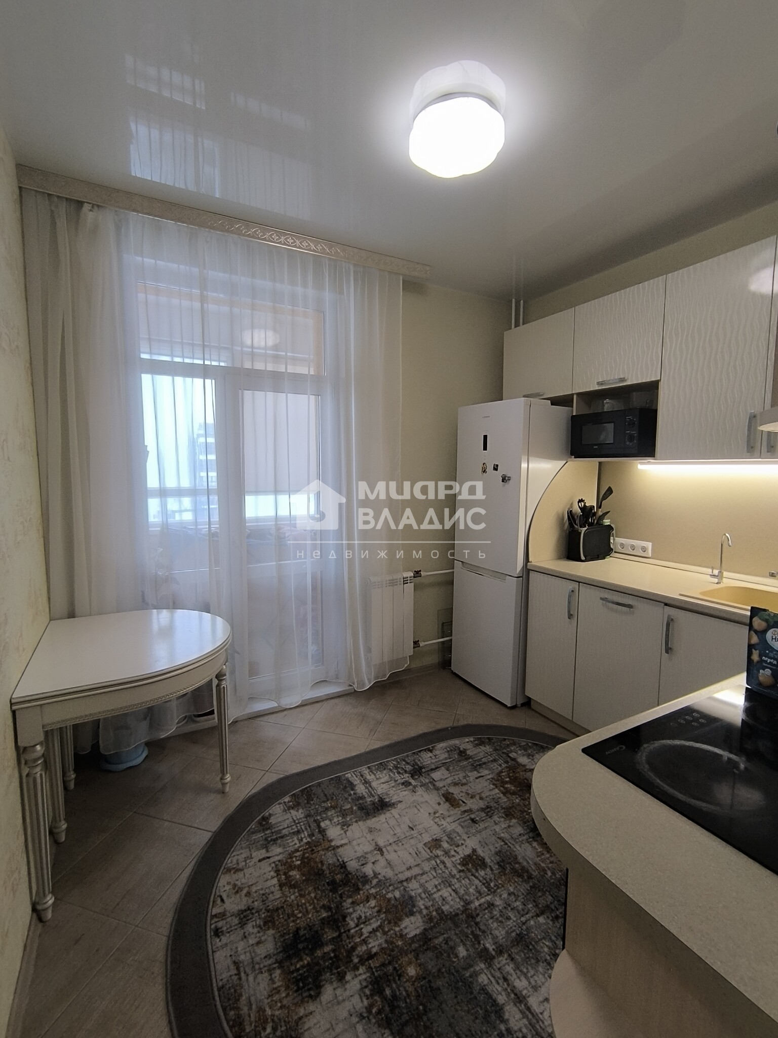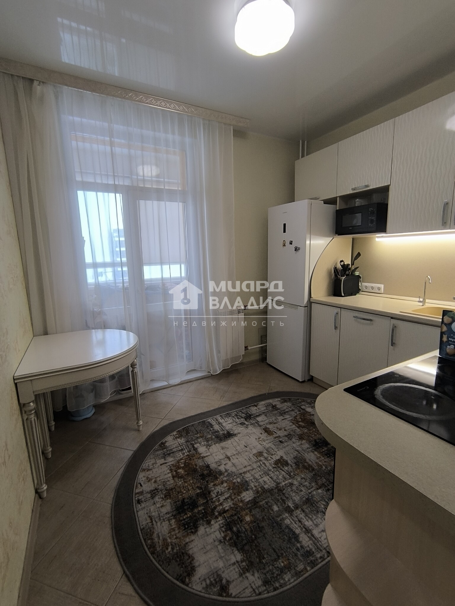 В квартире выполнен качественный современный ремонт. Большая жилая комната, просторная кухня с выходом на лоджию, совмещенный санузел. Приятным бонусом для новых собственников будет встроенная мебель и бытовая техника. В доме два лифта, грузовой и пассажирский. В подъезде всегда чисто. Придомовая территория ухожена. По периметру дома парковка для автомобилей.