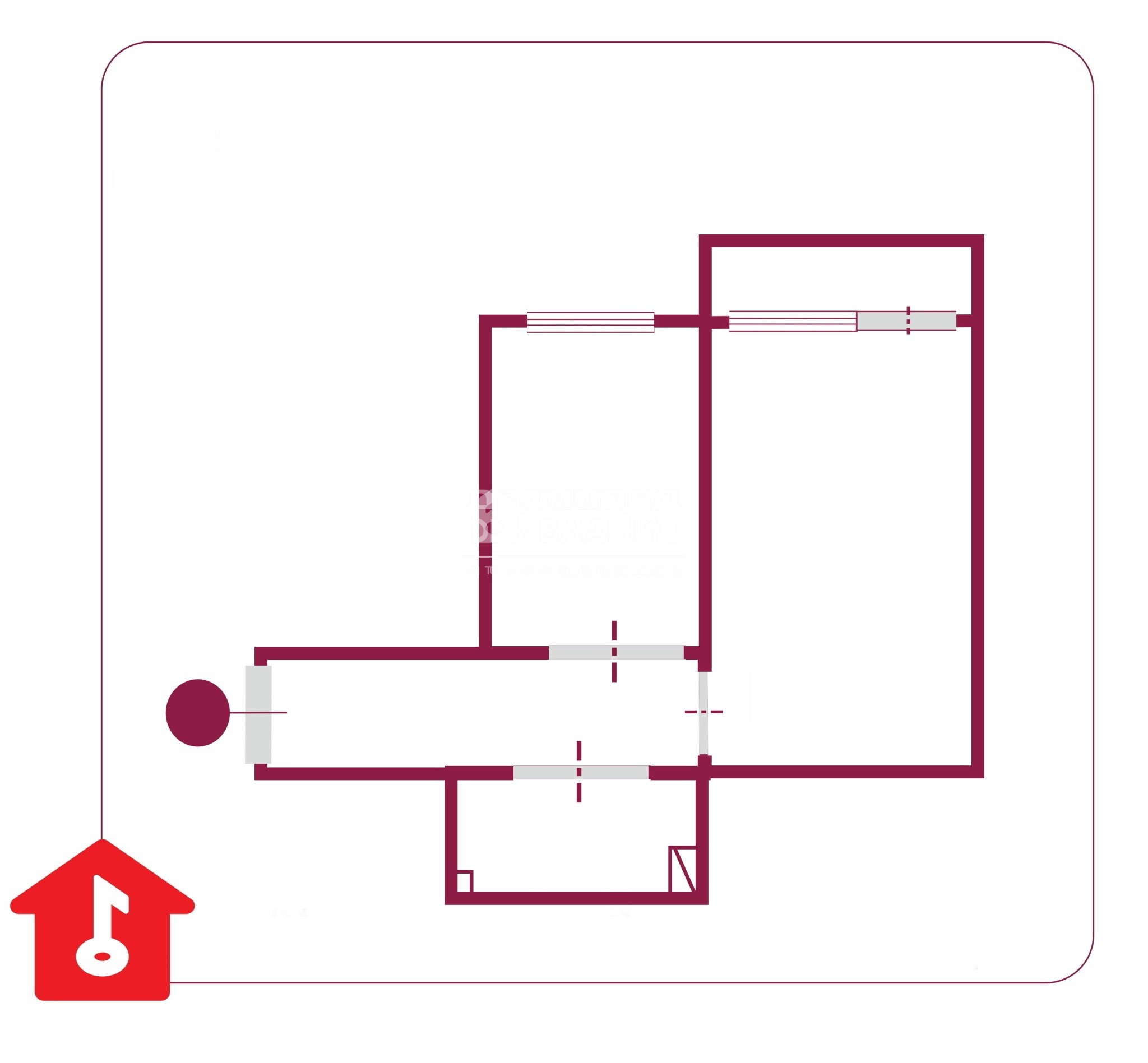 Общая площадь составляет 44 кв. м, жилая — 19 кв. м, площадь кухни — 9 кв. м. Высота потолков — 2,7 м.