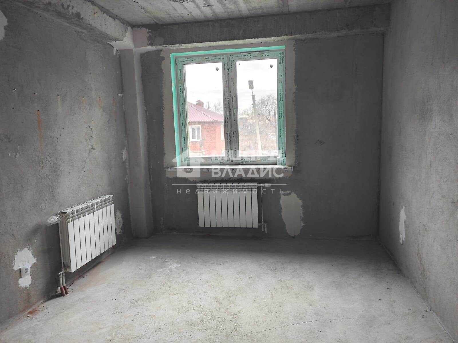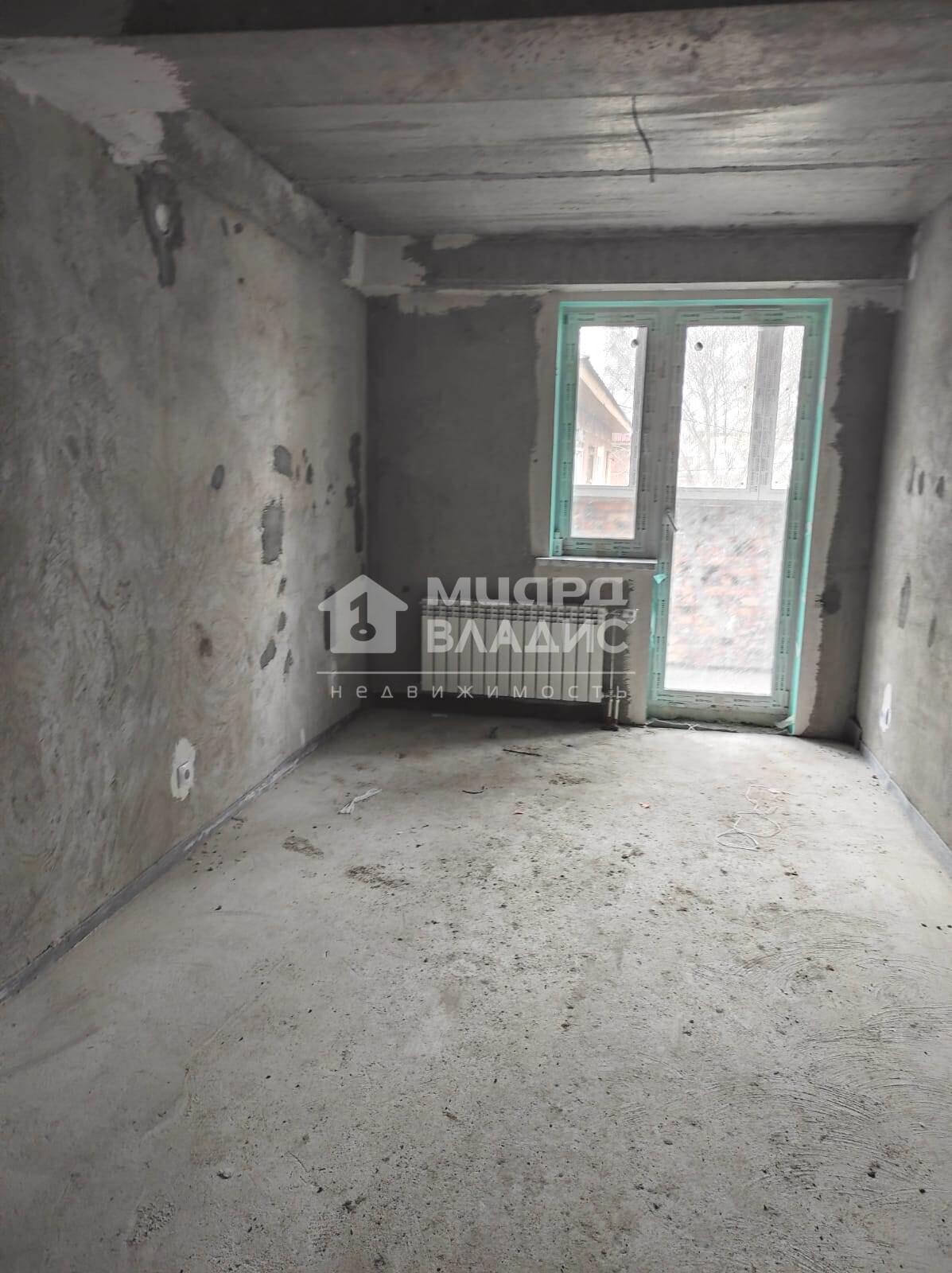 Черновая отделка, залита стяжка пола, заведена электрика, установлены приборы учета.