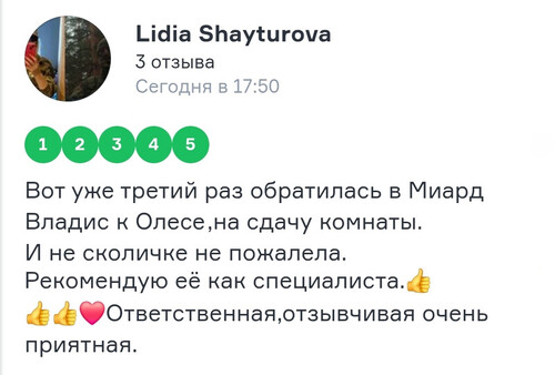 При покупке квартиры открыли для себя хорошее агентство недвижимости, помогли проверить выбранную квартиру, проверили на наличие долгов и подводных камней, связанных с наследованием и другими возможными обременениями, быстро и чётко предоставили всю информацию по недвижимости и сопровождали всю сделку и даже после покупки обращались с уточняющими вопросами. Особенно большую благодарность хочется выразить Вячеславу, который был агентом нанятым продавцом, но фактически стал и нашем агентом, через него шла вся информация, он скрупулезно сопровождал каждый этап. Звонили ему, и в будние дни, и в вечернее время, и в выходные, всегда на связи. Даже спустя несколько месяцев после покупки обратились к нему с вопросом не связанным со сделкой, проконсультировал, помог информацией. Также хочется отметить и юридическую команду, которая сопровождала сделку и помогла оформить ипотеку, которую нам не давала из-за наличия ИП. Очень рады и довольны покупкой квартиры у агентства МИАРД Владис! Спасибо, вы лучшие!